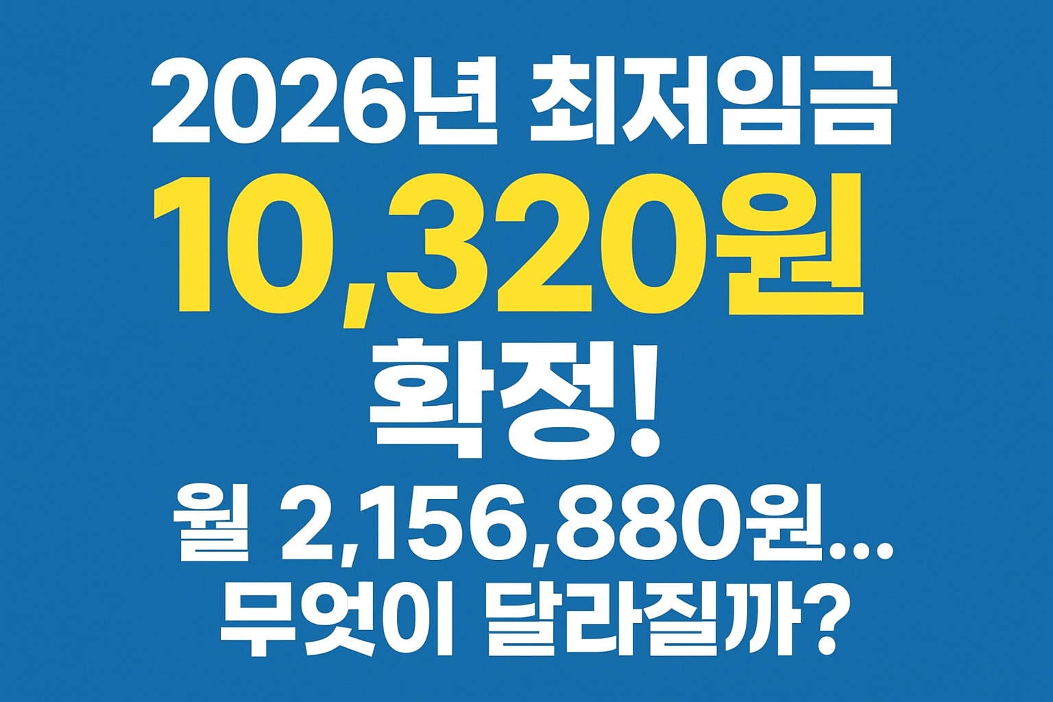 2026년 최저임금이 시간당 10,320원(전년 대비 +2.9%, +290원)으로 확정됐습니다.